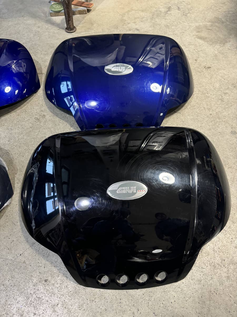 Prodáme originál lakované víka kufrů GIVI na kufry GIVI V46 barva: černá, šedá, modré navy, modrá steel dále GIVI Simply 470 barva: stříbrná GIVI Maxia 52 barva: stříbrný mat. dále vrchní kryt na topcase Kawasaki Versys (klasická zelená) za 699, a 1x givi (bílá) a 1x GIVI s emblémem suzuki (červený). Prosíme pouze VOLAT. Díky!