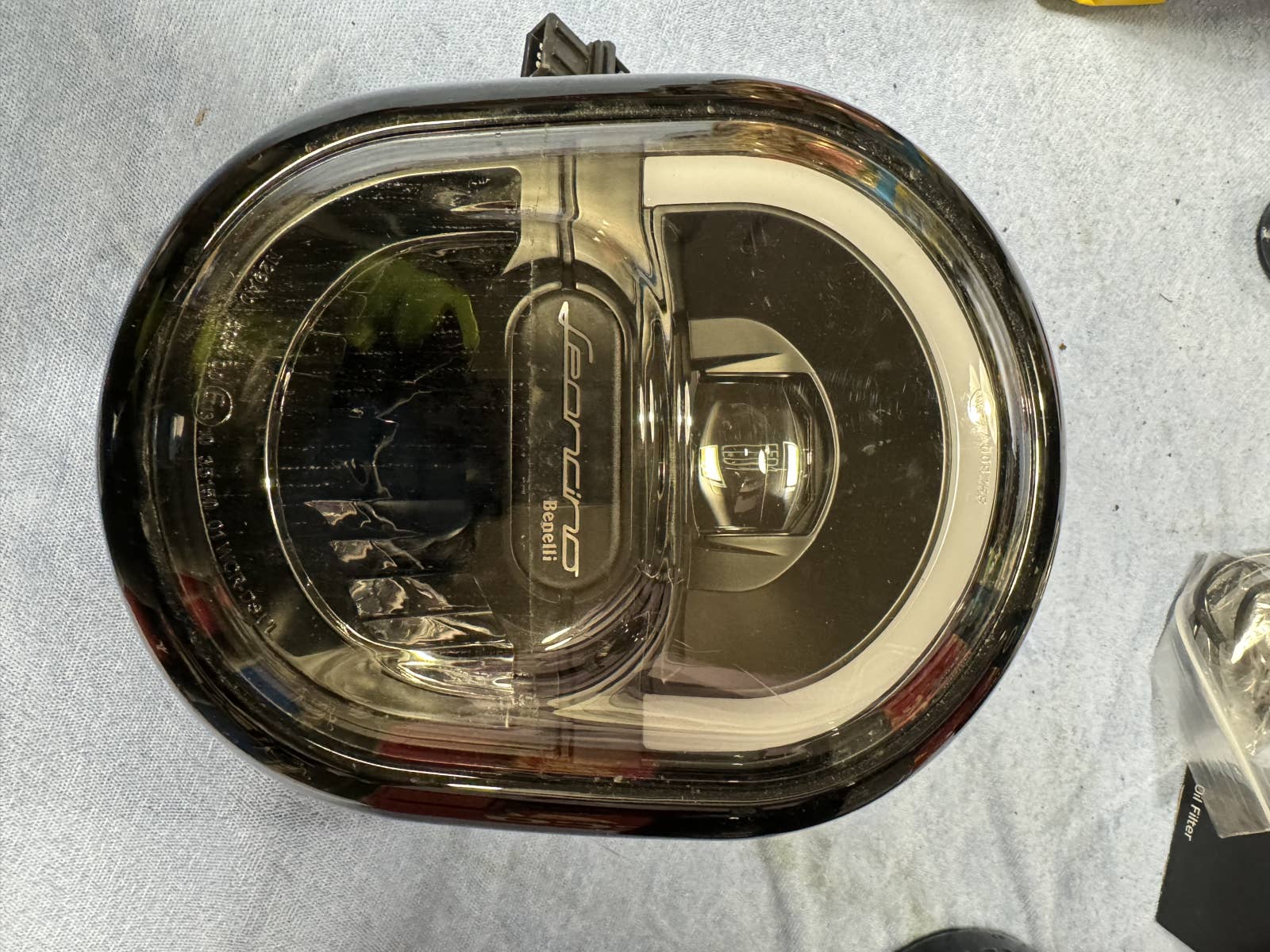 Prodáme použité a nepoškozené přední světlo na Benelli Leoncino. Parabola zcela bez poškození, na černém rámečku (vyměnitelný) kousek odprasklý - viz foto. Prosíme pouze VOLAT. Děkujeme!